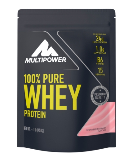 Multipower's 100% Pure Whey Protein liefert Ihnen 78% des reinsten Whey-Proteins aus drei Quellen - Isolat, Konzentrat und Hydrolysat. Wir verwenden die reinste Form, das Whey-Protein-Isolat, als Hauptbestandteil, um 23g des hochwertigsten Proteins (einschließlich 5,7g BCAAs) mit nur 1,3g Kohlenhydraten hinzuzufügen.